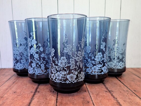 Vinage Libbey Glass Oriental Tumblers Blue Glass Light Blue Etsy Canada