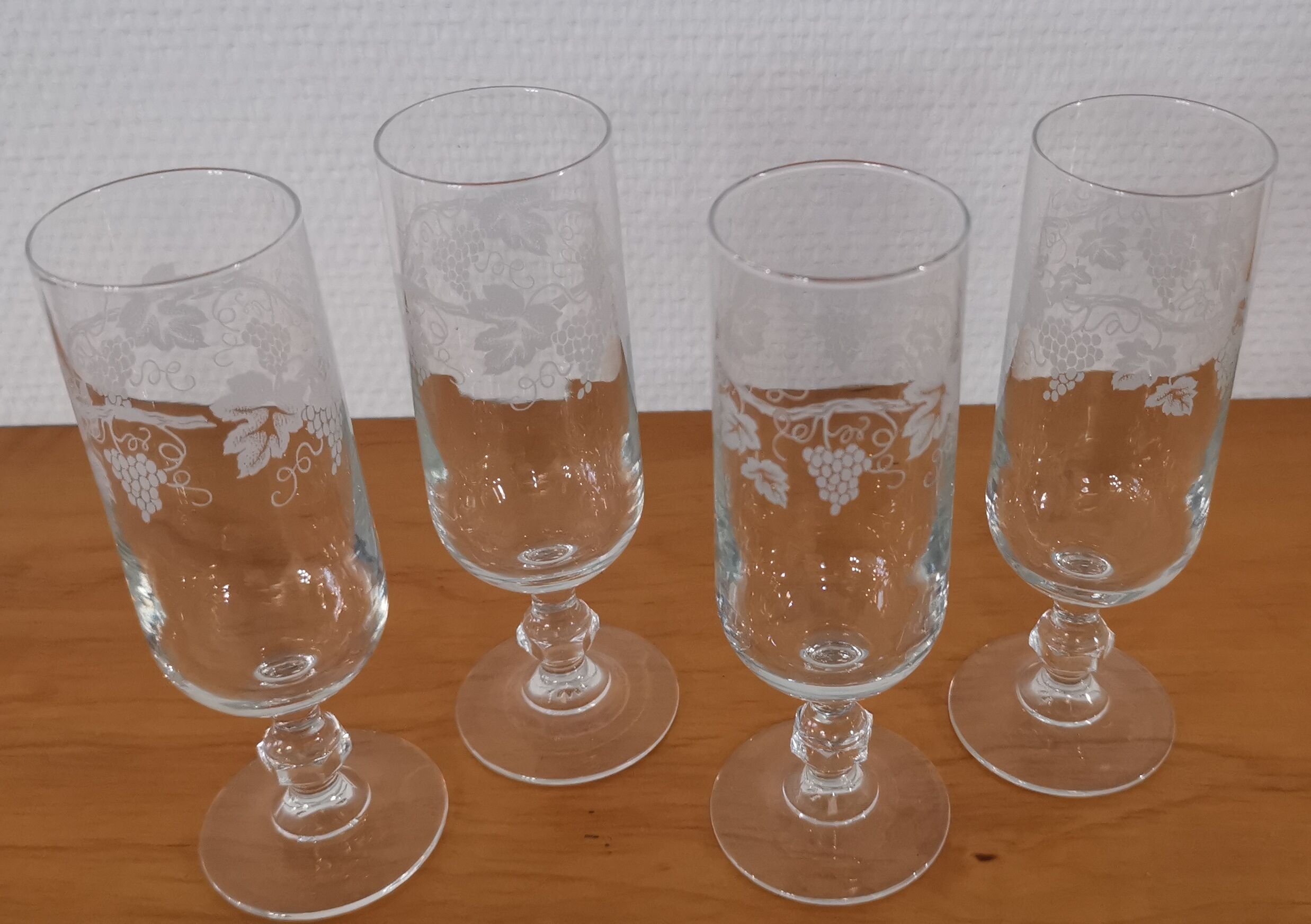 Set Of 4 Crystal Flutes Grape Decoration And Luminarc Vine Shoot Selency